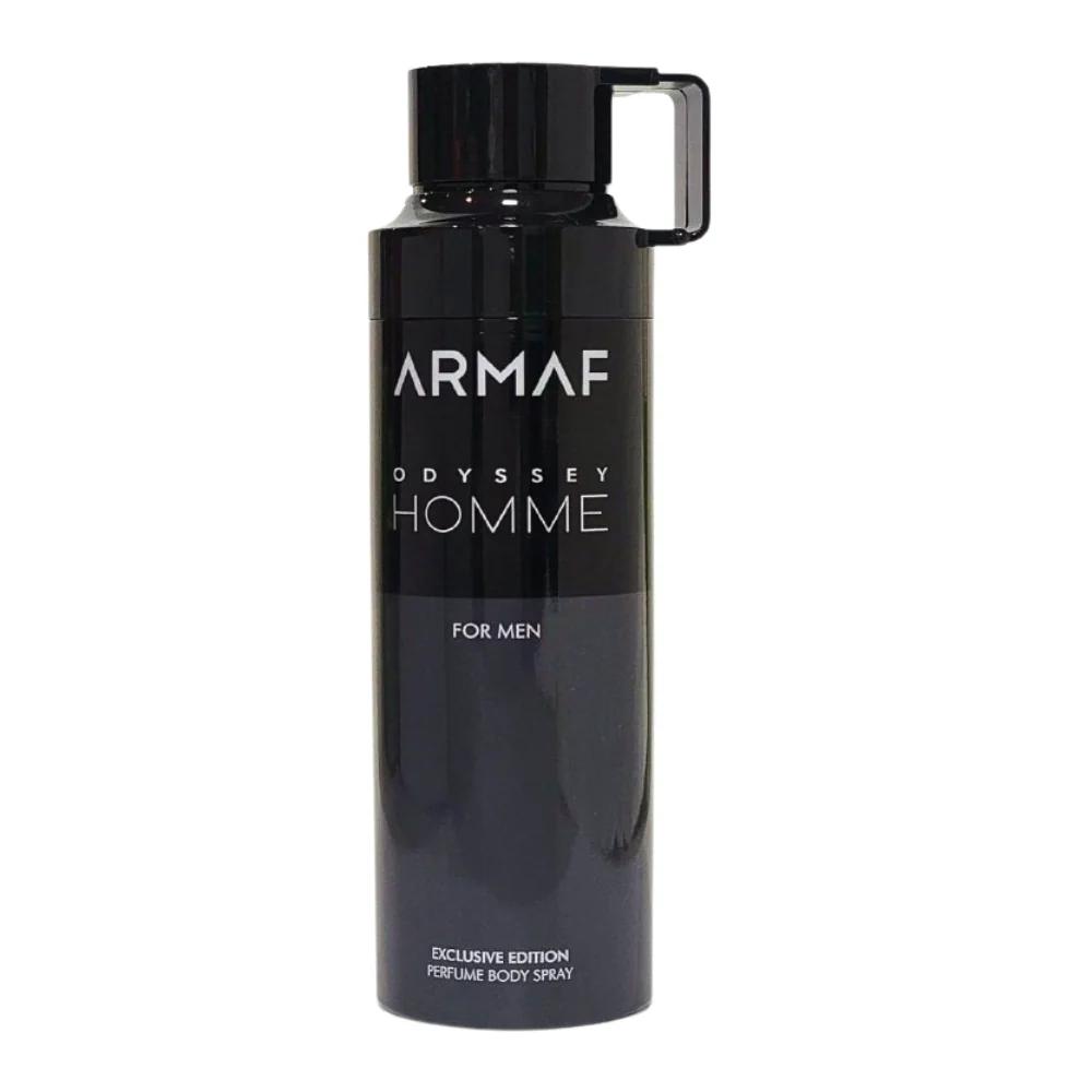 Odyssey Homme está disponível como um spray corporal perfumado (perfumed body spray), oferecendo uma fragrância masculina sofisticada.